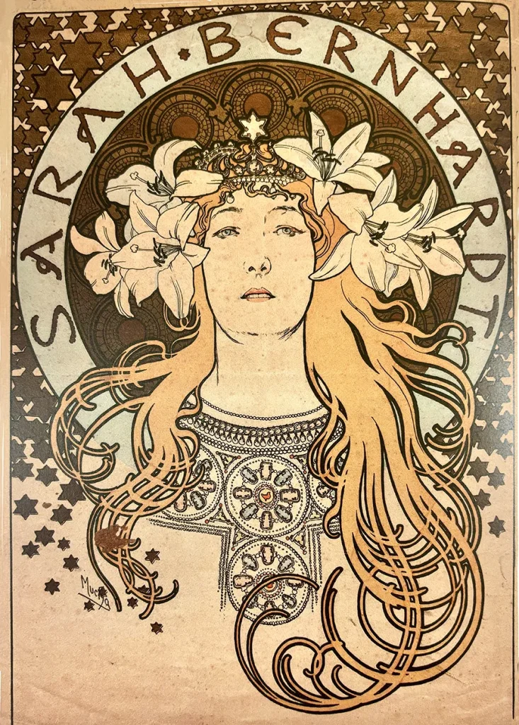 Nous l’avons croisée rue de Provence, dans la galerie de Siegfried Bing, acheter de merveilleuses pièces d’art japonais avant que la boutique ne se transforme en maison des Arts Nouveau. Nous l’avons entendue passer commande en urgence d’une affiche pour sa pièce Gismonda à l’imprimeur Lemercier, et façonner ainsi la renommée d’un certain Alfons Mucha, en 1894.