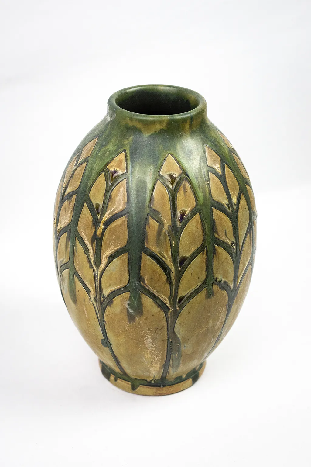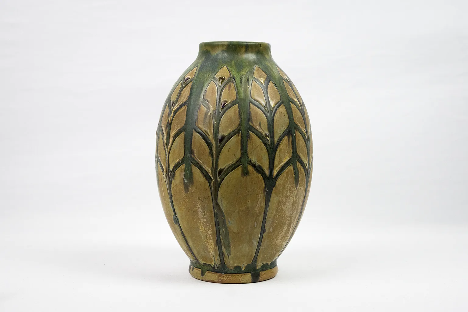 L’œuvre s’inscrit dans la lignée des recherches de Catteau sur la stylisation du motif naturel, influencées par le japonisme et les arts africains. Ce langage graphique rigoureux et poétique confère à ce vase une forte présence plastique.