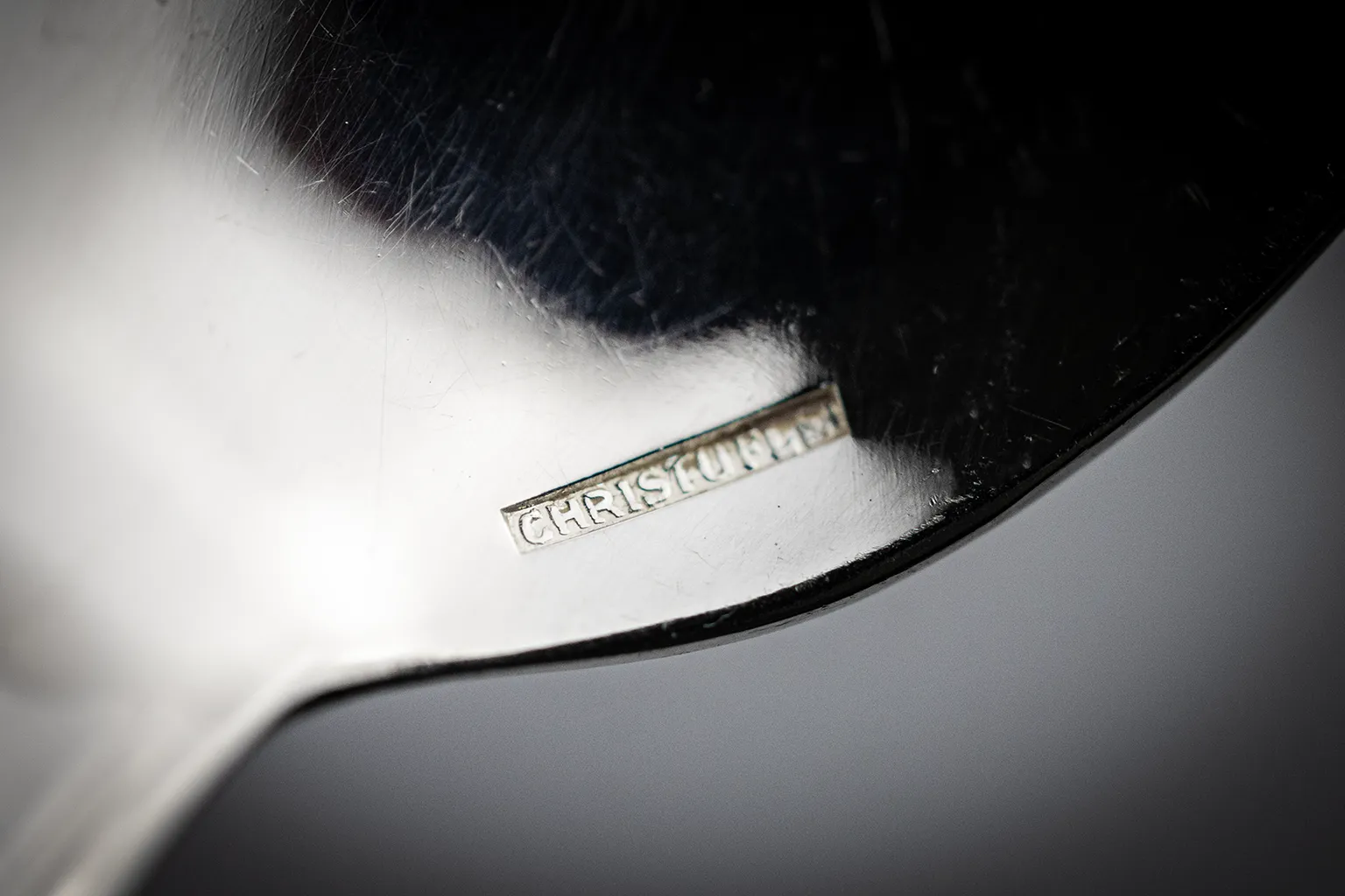Chaque pièce porte le poinçon de la maison, visible au revers (voir photographie). Le métal argenté — spécialité historique de Christofle depuis le XIXᵉ siècle — associe une base métallique à un dépôt d’argent par procédé électrolytique, offrant brillance et résistance à l’usage quotidien.